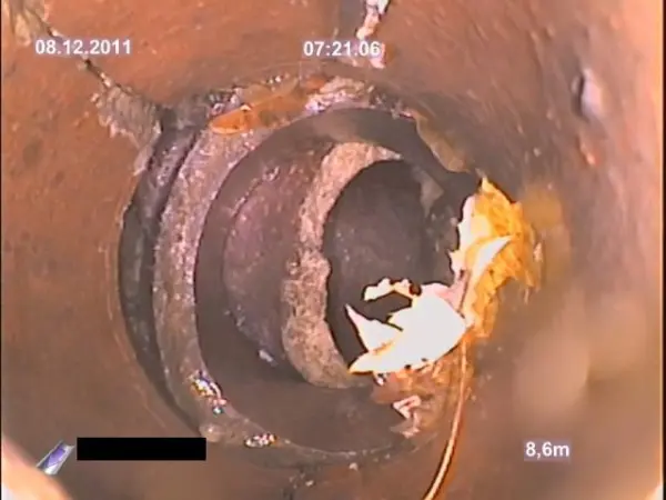 Besonders alte Metallrohre (z.B. Gusseisen) korrodieren über Jahrzehnte, was zu Lochbildung führt.
